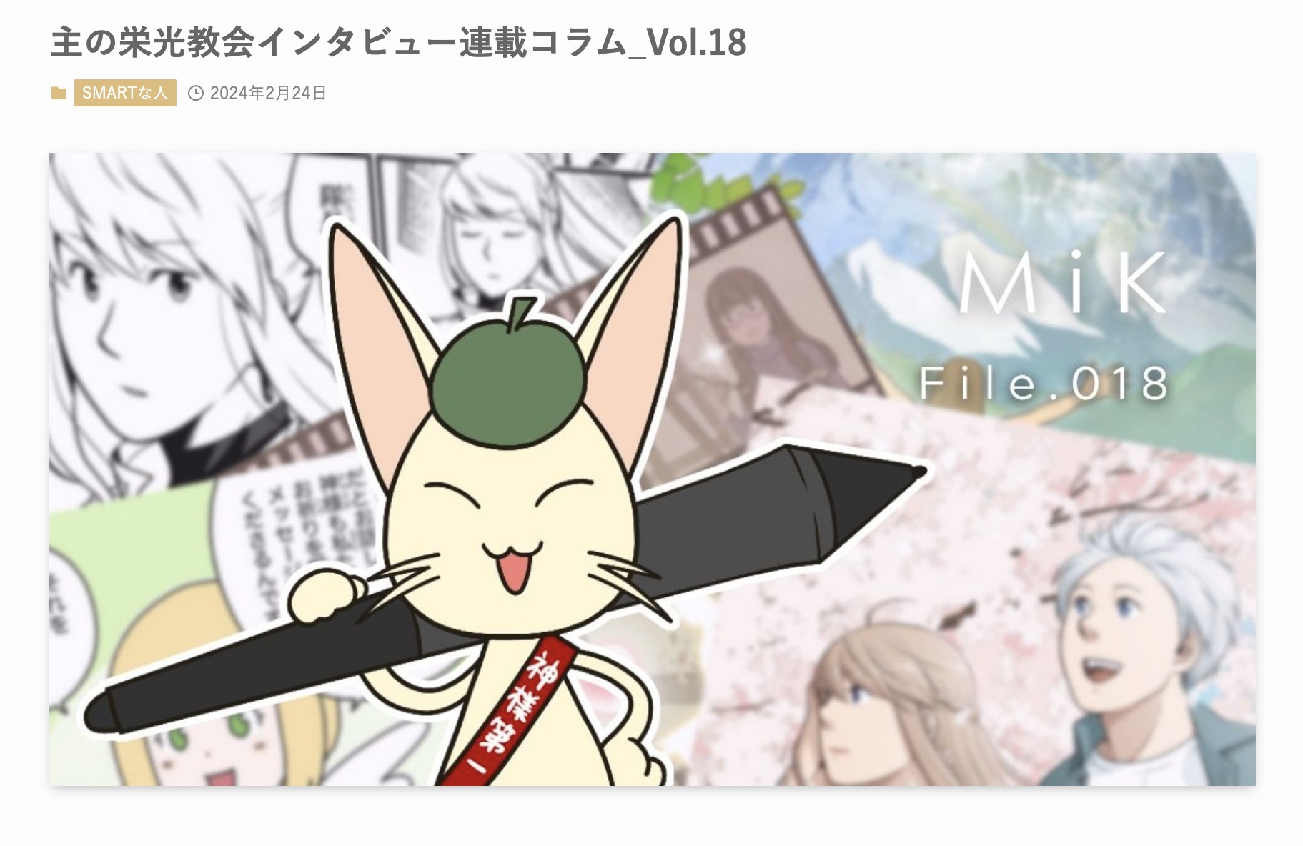 このたび、私が通っている名古屋主の栄光教会ホームページの「SMARTな人」というインタビュー連載コラムで取り上げていただきました!