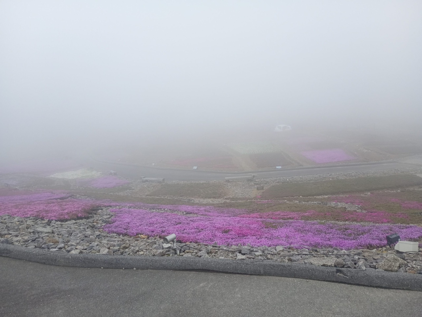 寒いし霧で視界は真っ白。
