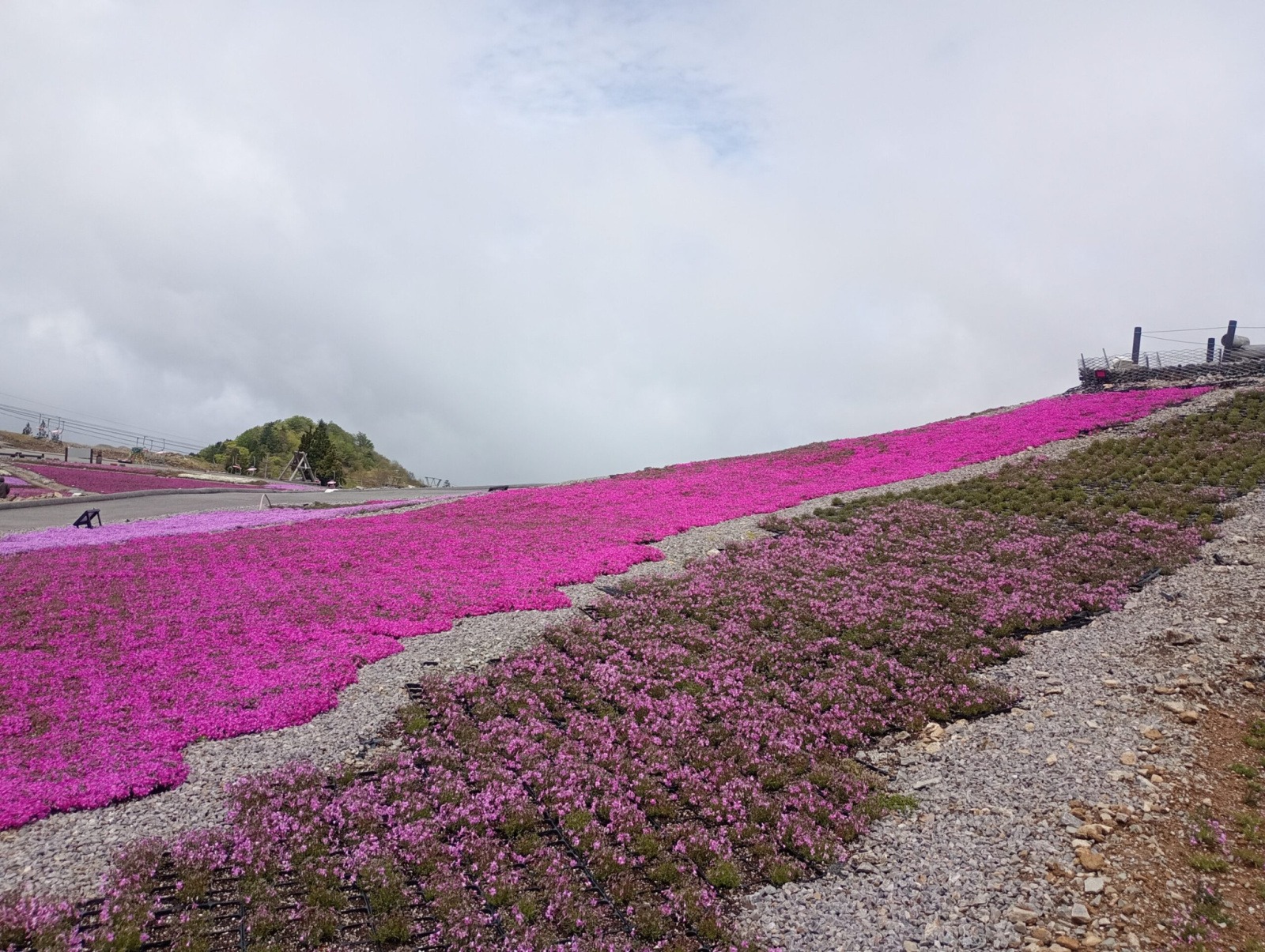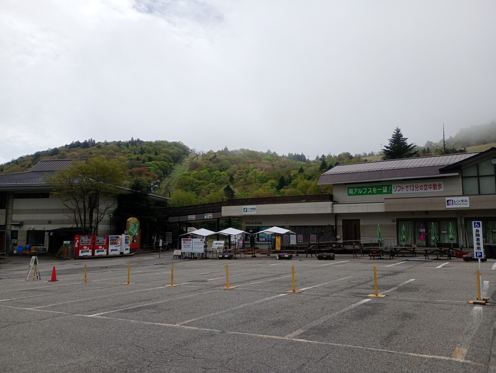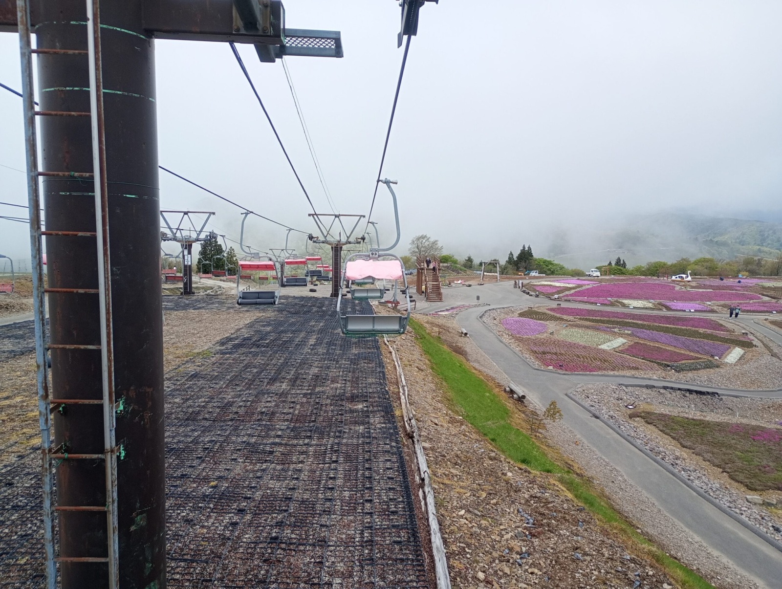 ちょっと心配しつつ、芝桜はリフトで登った先にあるので、山の上に上がってみました。