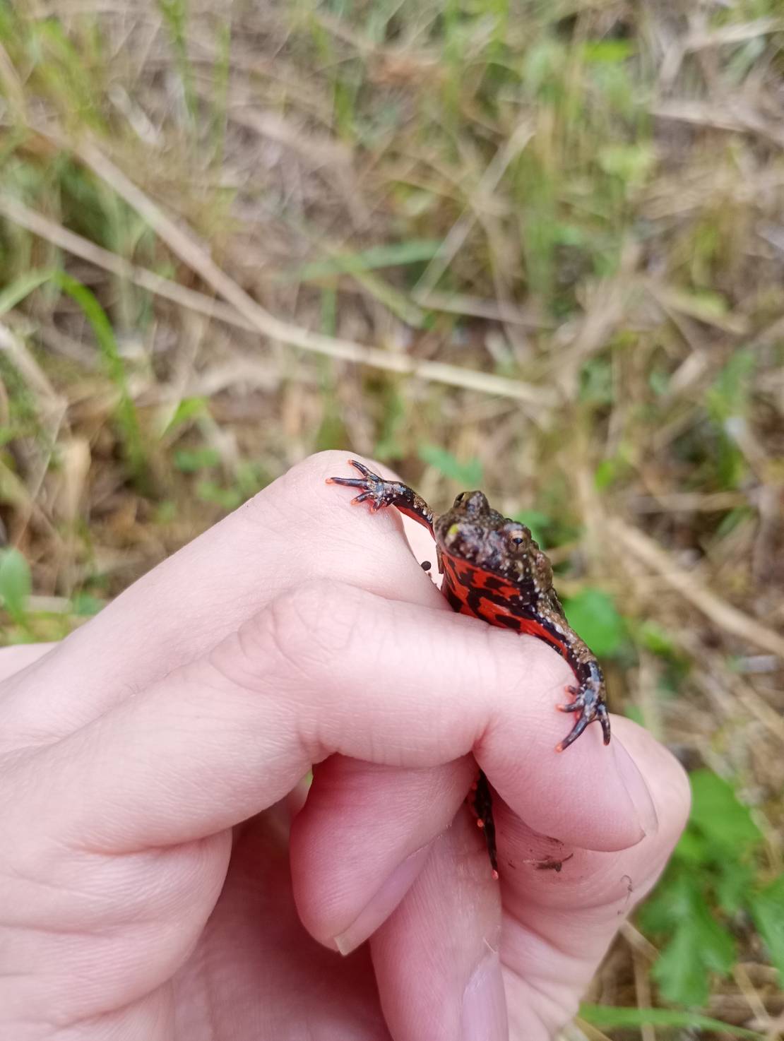 有毒らしいですがガッツリ掴みましたね(確かにお腹は警戒色)。まぁ目とか口とかの粘膜系は危ないけど皮膚は大丈夫なようなので、触る分には問題ないようです。私も何ともありませんでした。
