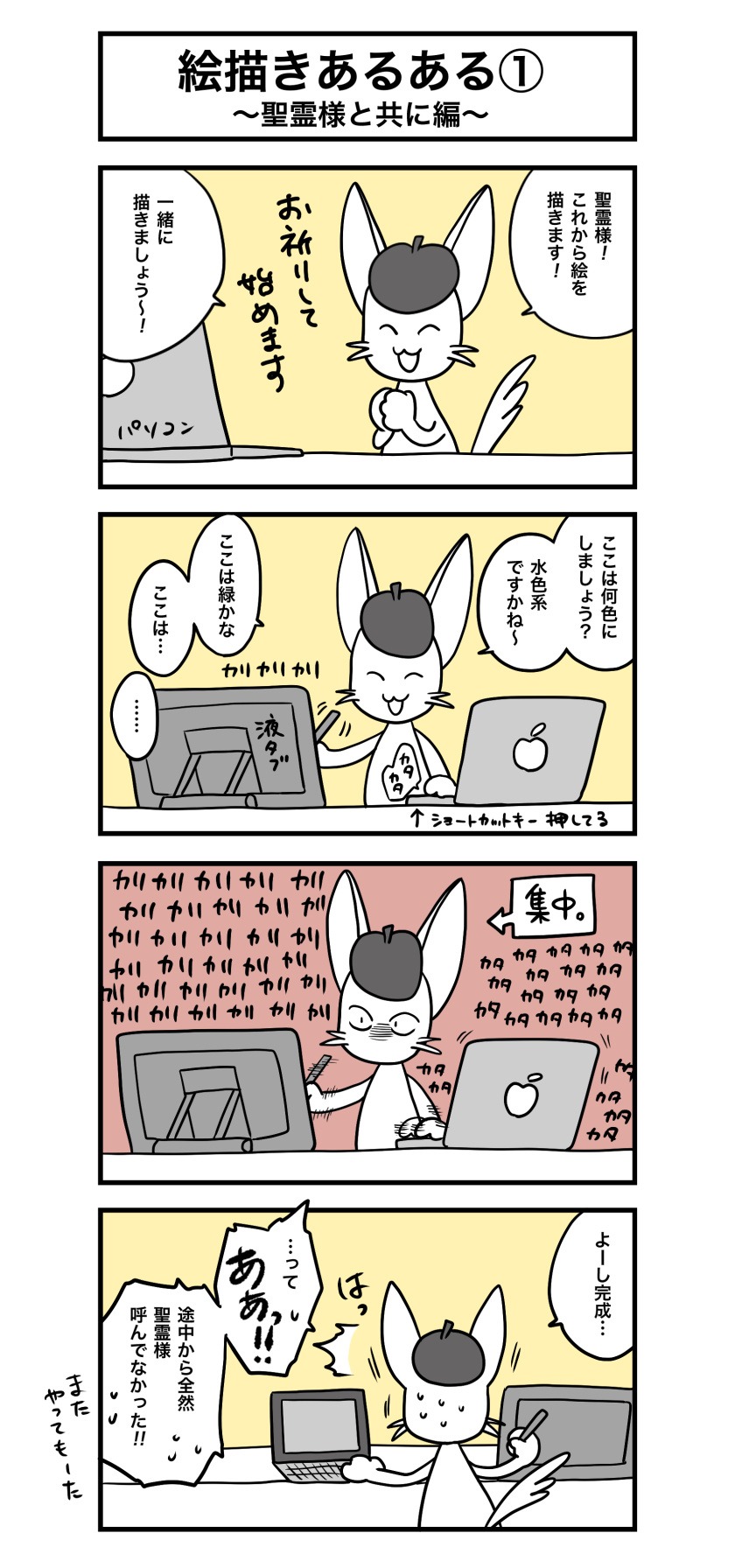 4コマ漫画「絵描きあるある①〜聖霊様と共に編〜」