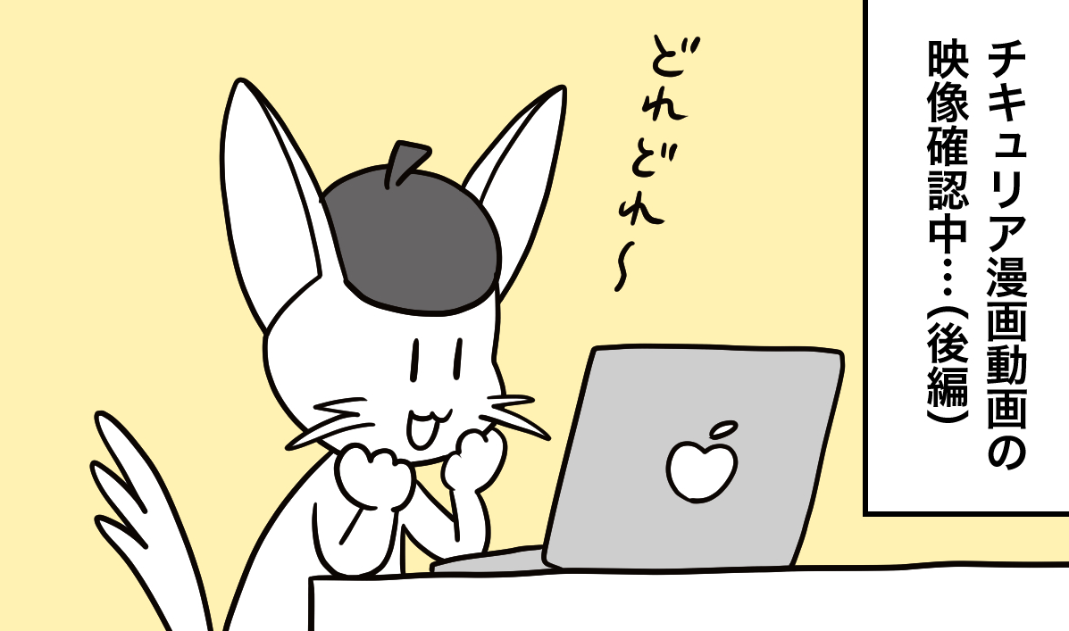 4コマ漫画「花瓶」、「効果音って大事」に引き続き、こちらも「チキュリア」漫画動画制作中の経緯です笑