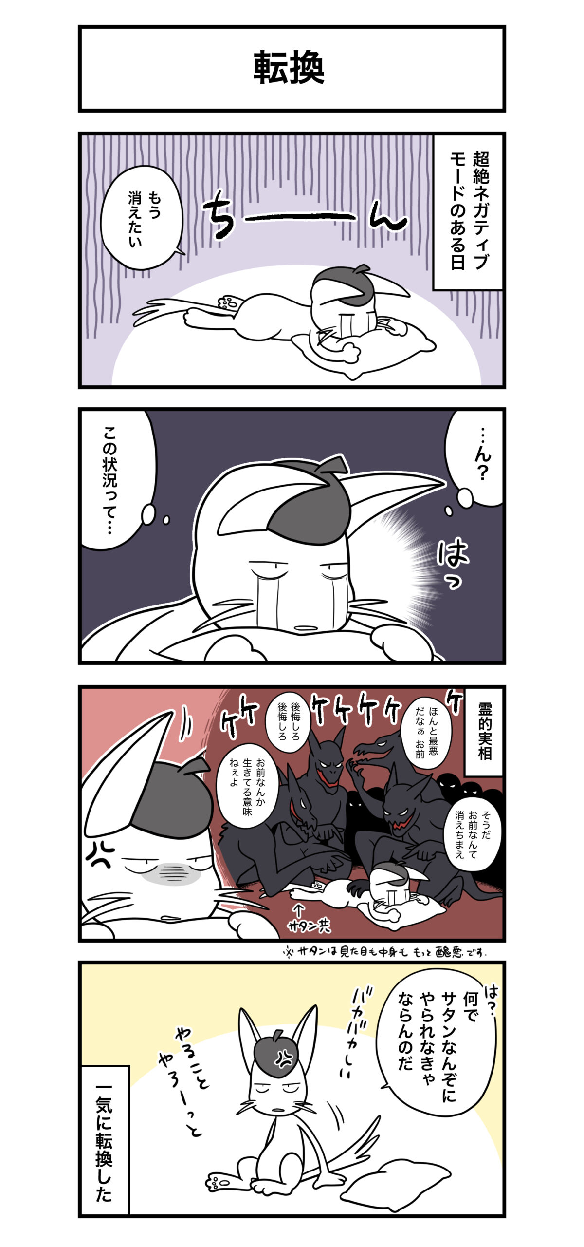 自分が自分を否定しているように思えて、実はサタンがそういう考えを与えているんですよね〜。3コマ目のように寄ってたかってサタンが自分を虐めてきていると考えたら、ほんとに腹が立ちました。笑