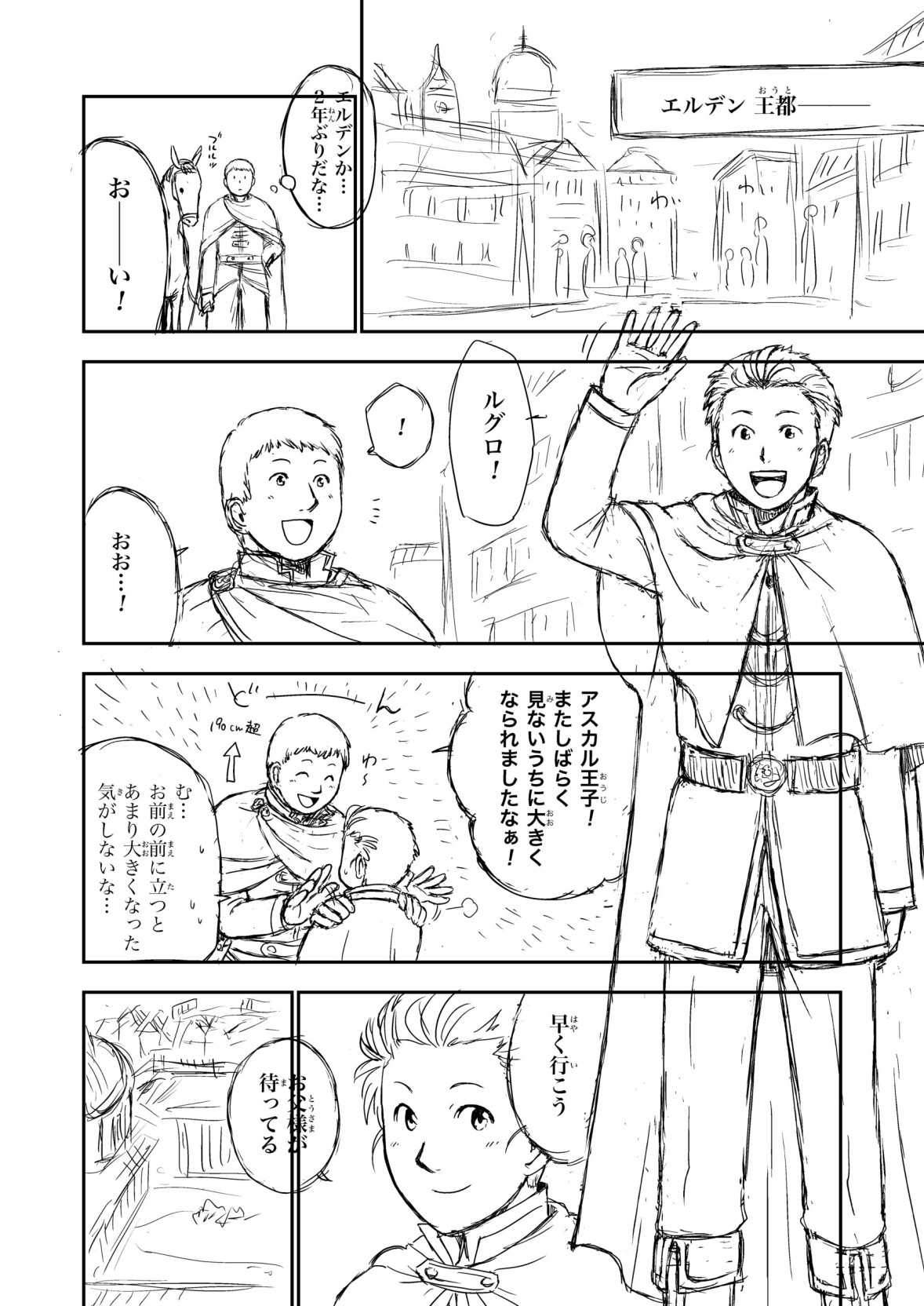 そして「アスカルがルグロをかばって撃たれたシーン」が、ページをめくった次のコマになっています。