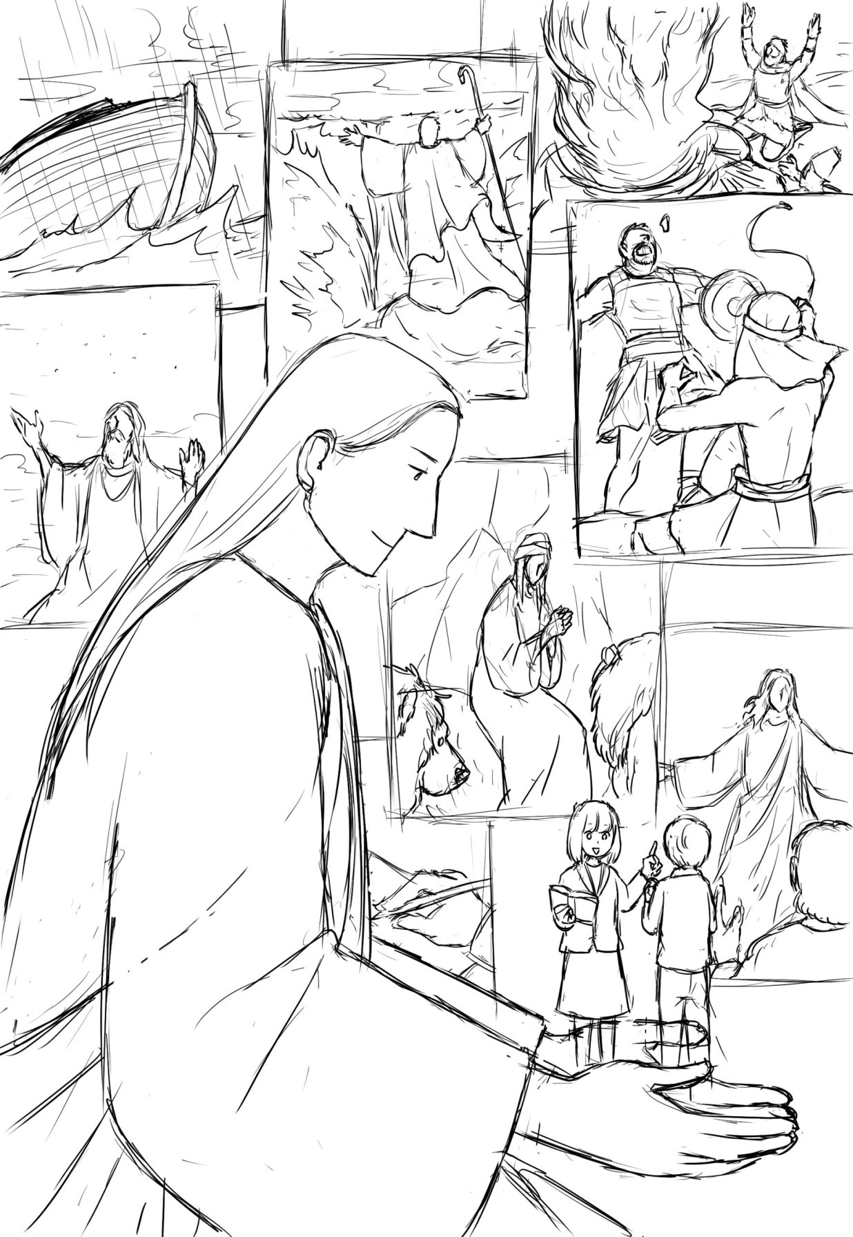 というか、御言葉イラストは<単純な線ではっきりと簡単に描く>ようにしているのに、浮かんだイメージはリアルな映画の広告画像のような、あるいは劇画タッチのイラストようなイメージで、それを御言葉イラストの雰囲気に落とし込むのにも苦労しました^^;