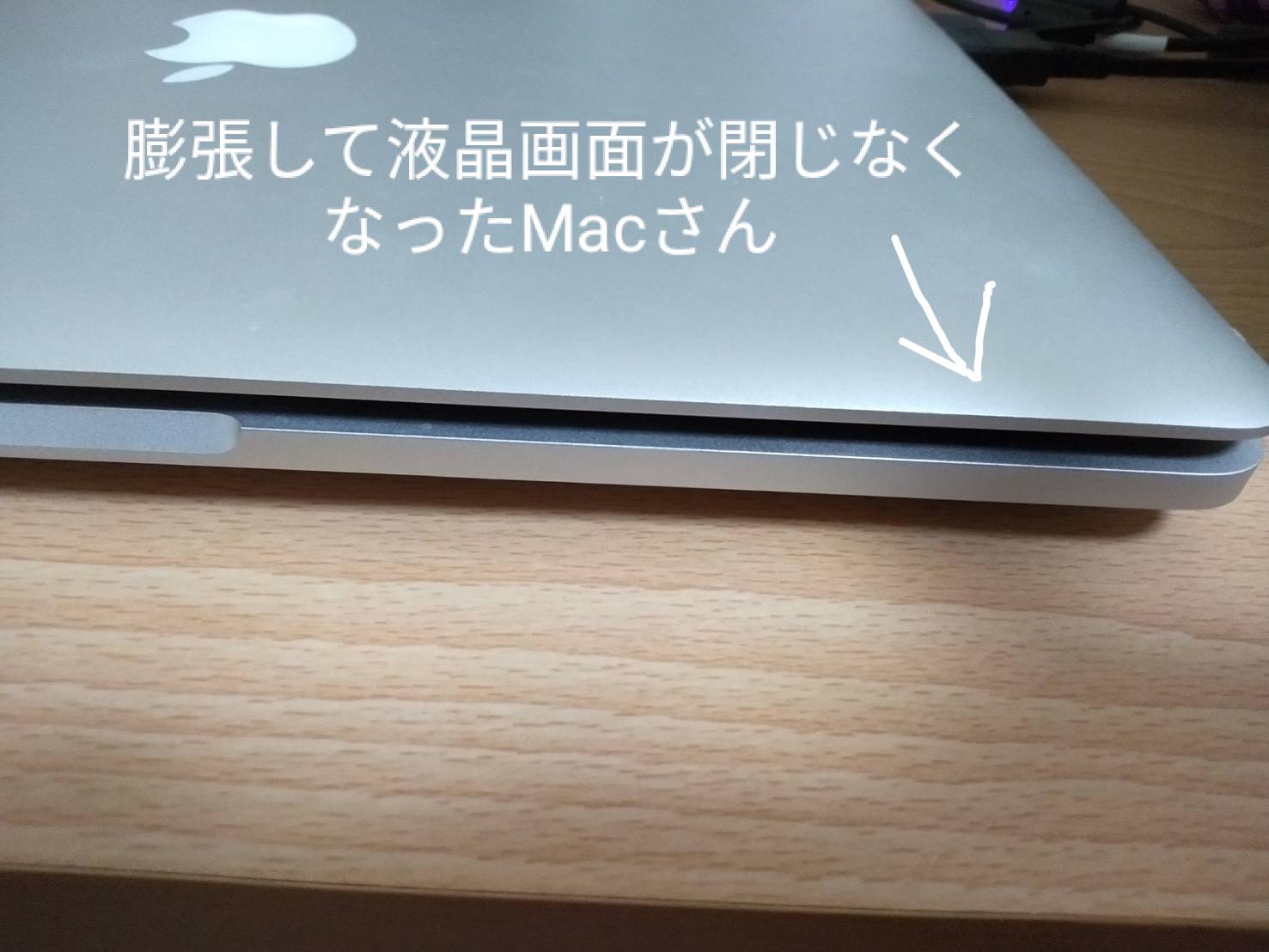 実は私のMac、だいぶ前から「パソコン本体が膨張して、液晶画面が閉じない」状態になっていました。