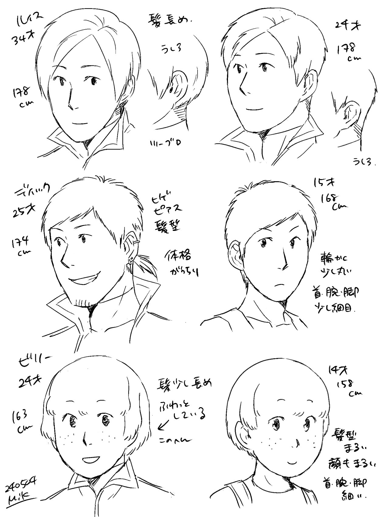現在(左)と過去編(右)のキャラ描き分け。ルイスさんは過去編でも成人してるので髪型くらいしか違わないけど、現在版はより落ち着きが出るように意識して描いてます(のつもりです)。15歳くらいの子供って大人でもないしめちゃ子供でもないし難しいっすね。子供ビリーは小学生にしか見えん。ビリーは大人になってもそんなに身長伸びなかったのコンプレックスかも知れない。
