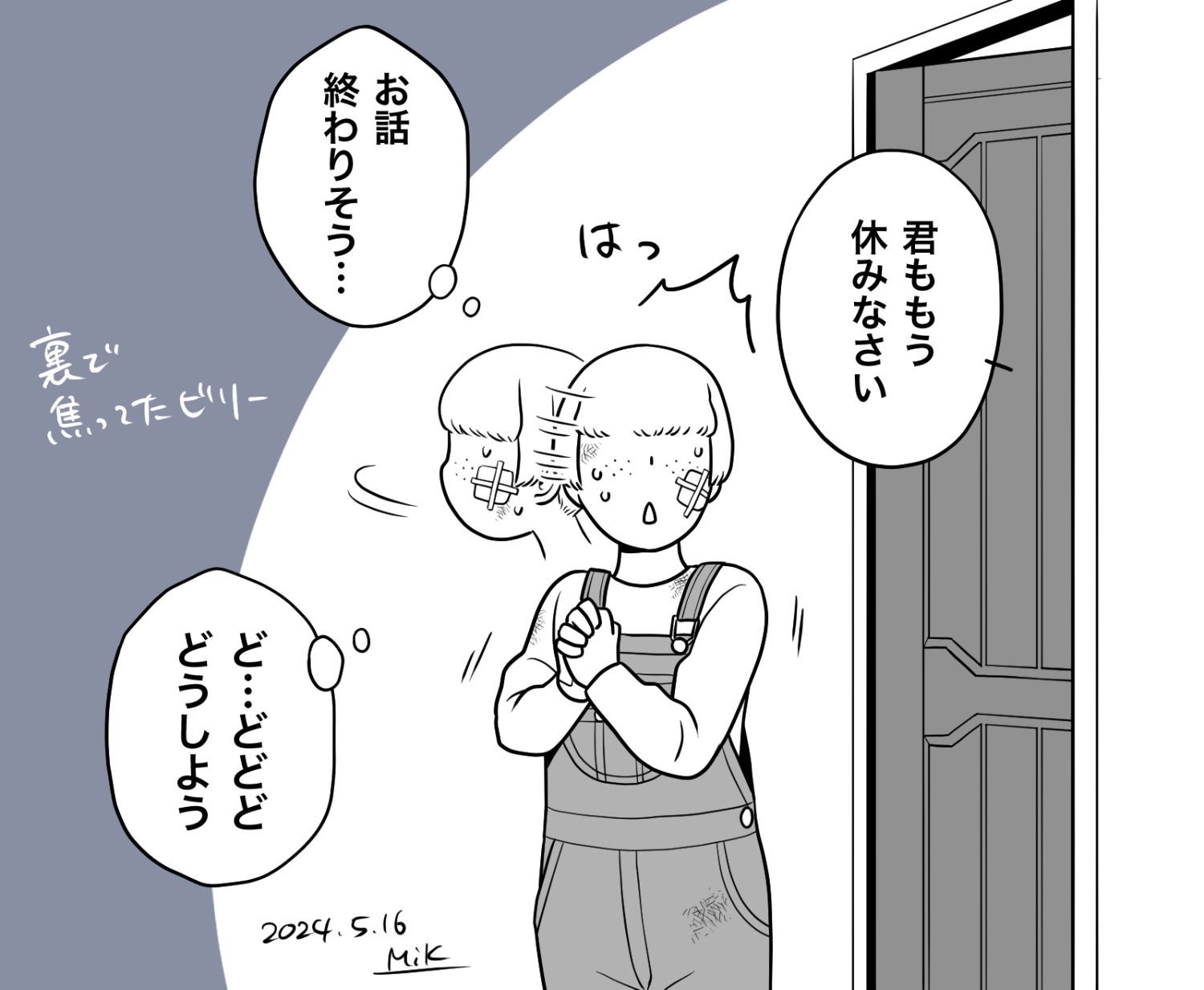 ルイスとディックの会話をこっそり聞いていたビリー。多分このあと手近なところに隠れてやり過ごし、後でしれっと部屋に戻ったのだと思われます。