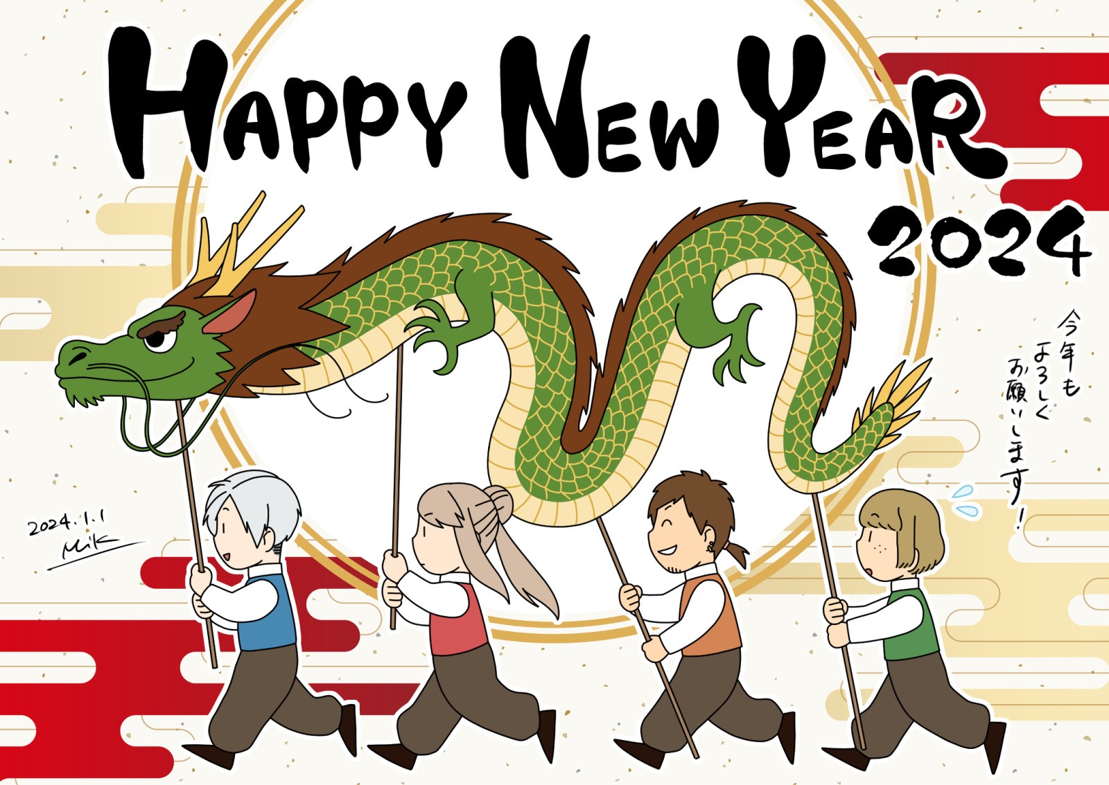 辰年年賀絵!地元(長崎)の蛇踊りのイメージで。