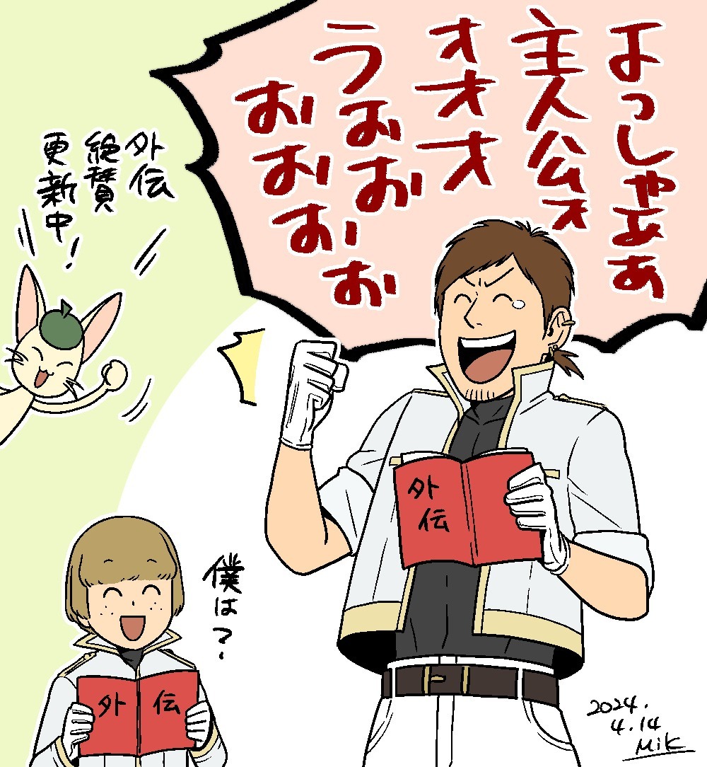 ちなみに外伝ラストのオチは本編第一部とらくがき①を見てもらえればもっと深まると思います。外伝にグスタフとケニーさんを出すことになるとは思ってなかった。