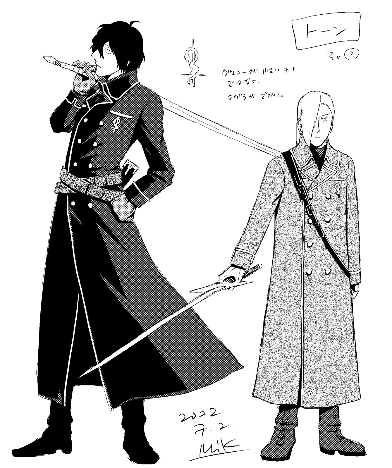 第一部の下描きに入る前にカラーとトーンの設定をしっかり決めておきたくて描いたもの。最終版は服などのデザインが少し変わっています。