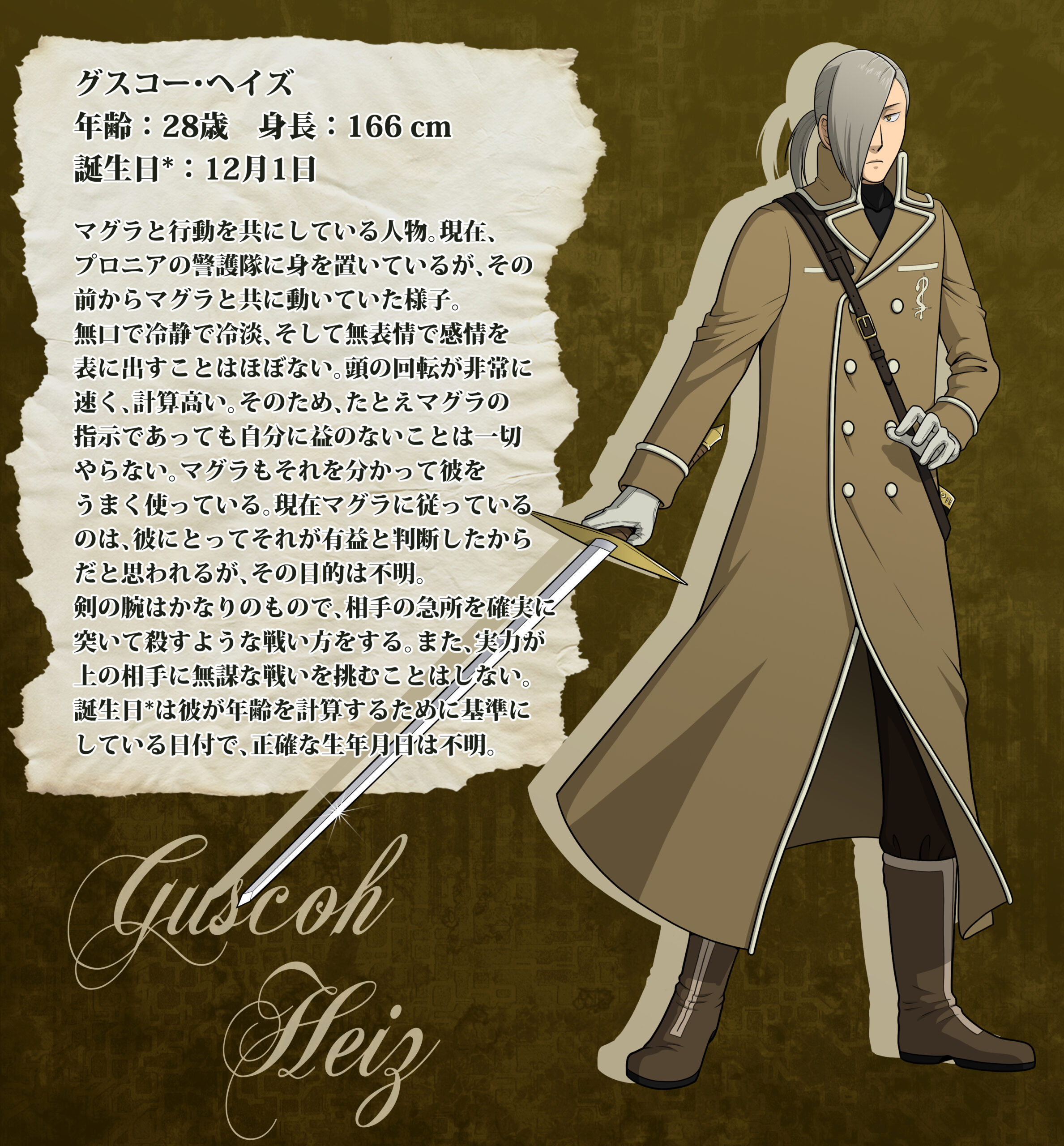 実はシナリオ考えた段階(キャラデザの前)では、グスコーはマグラの言いなりで「〜っす」と話す頭の悪そうなキャラでした。話し方がディックに被るのと他にも変更したい理由があって考え直し、最終的にまるっきり違うタイプのキャラになりました。