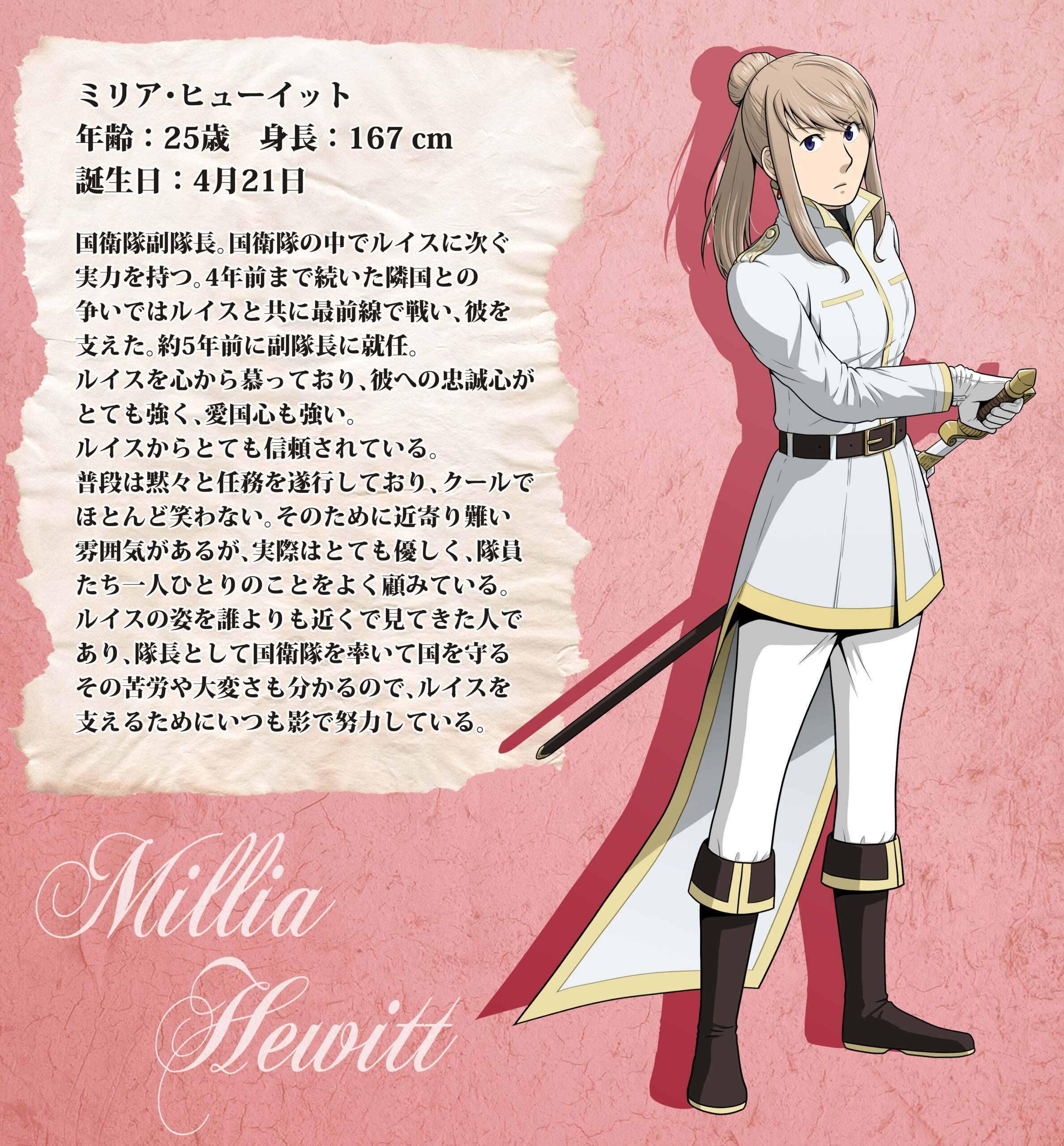 ミリアは10代で国衛隊に入隊し、実力が十分だったので20歳になってから副隊長を任されました。彼女の前は数年間副隊長が不在でした(前任者は大怪我をして退役)。らくがき③にコンクエ年表があるので見てみてください。
