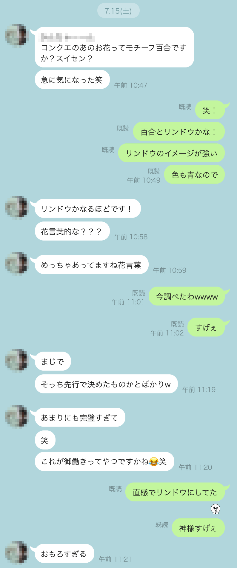 そして原稿を描き終える日(しかも私の記念日)に合わせて聖霊様がそのメンバーに感動を与え、花のモチーフが気になるようにさせて私にラインを送るようにさせるという。