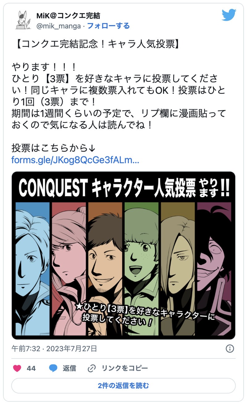 そして現在、完結記念にキャラクター人気投票を実施しています笑