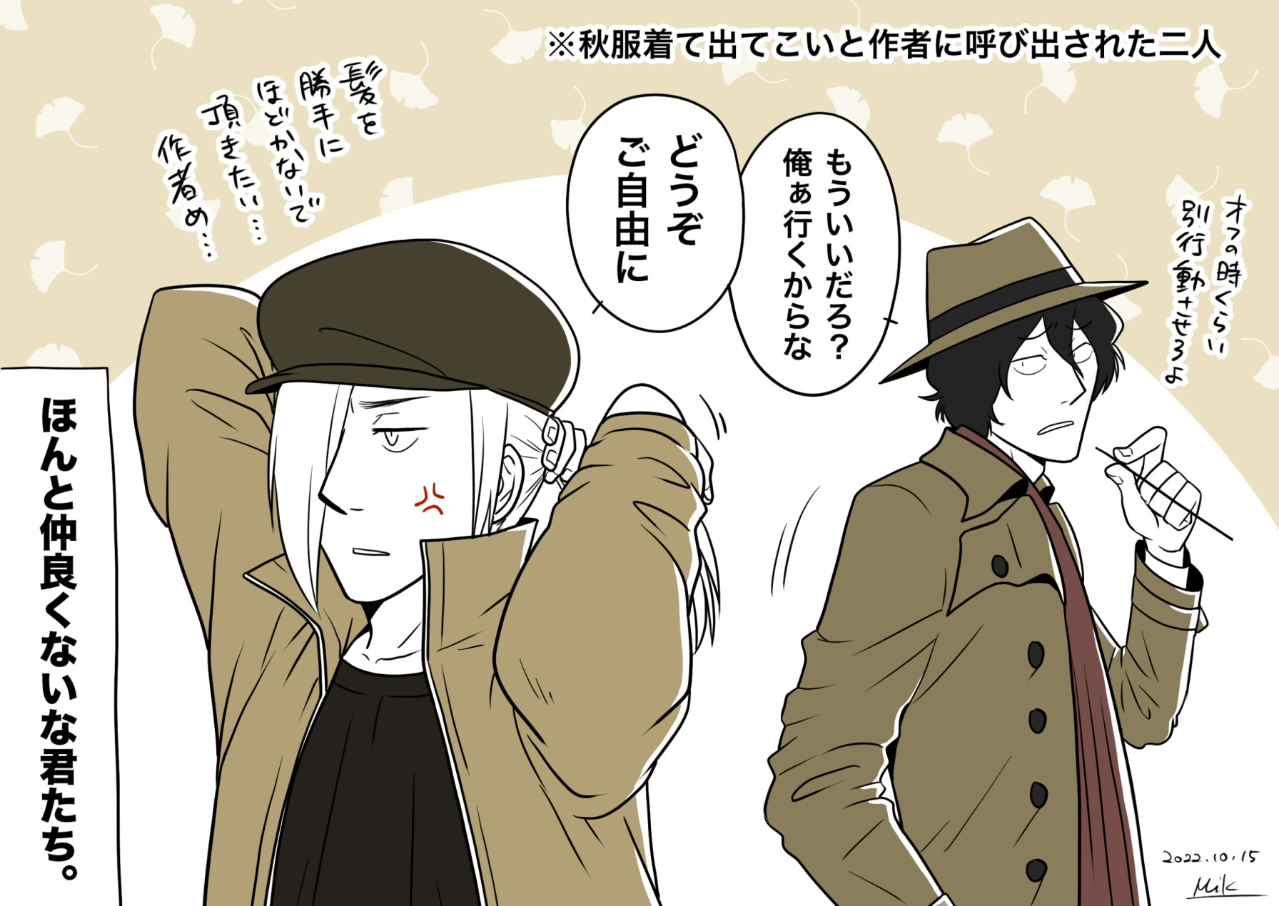 イラストvol.1でルイス組秋イラスト(紅葉狩り)を描いたのでマグラグスコ版も描こうと思ったけど、この人たちは一緒に何かするような仲ではないですね。