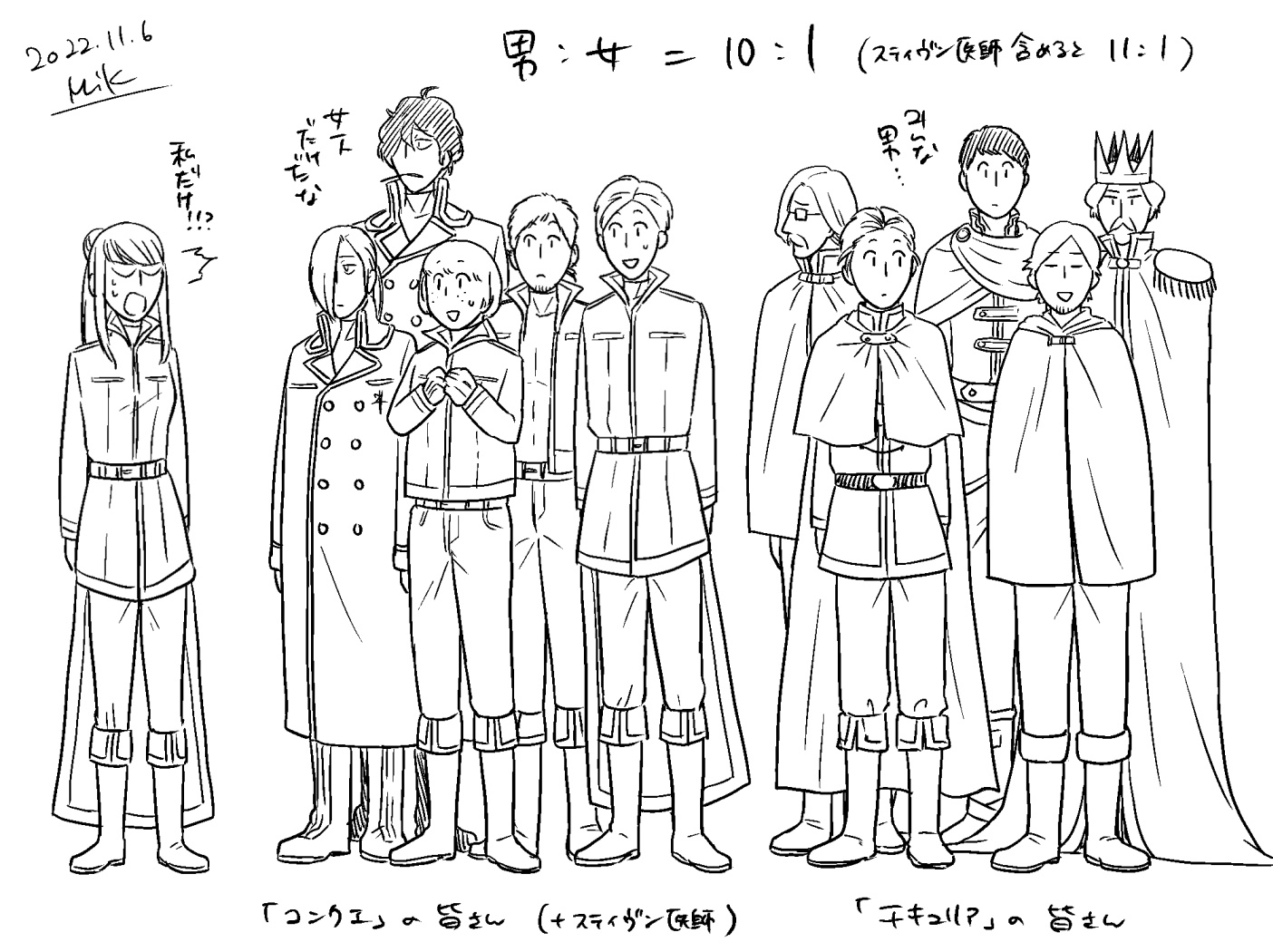 ちなみに身長はわりと正確に描いて並べてます。チキュリアのキャラみんなでかいな。