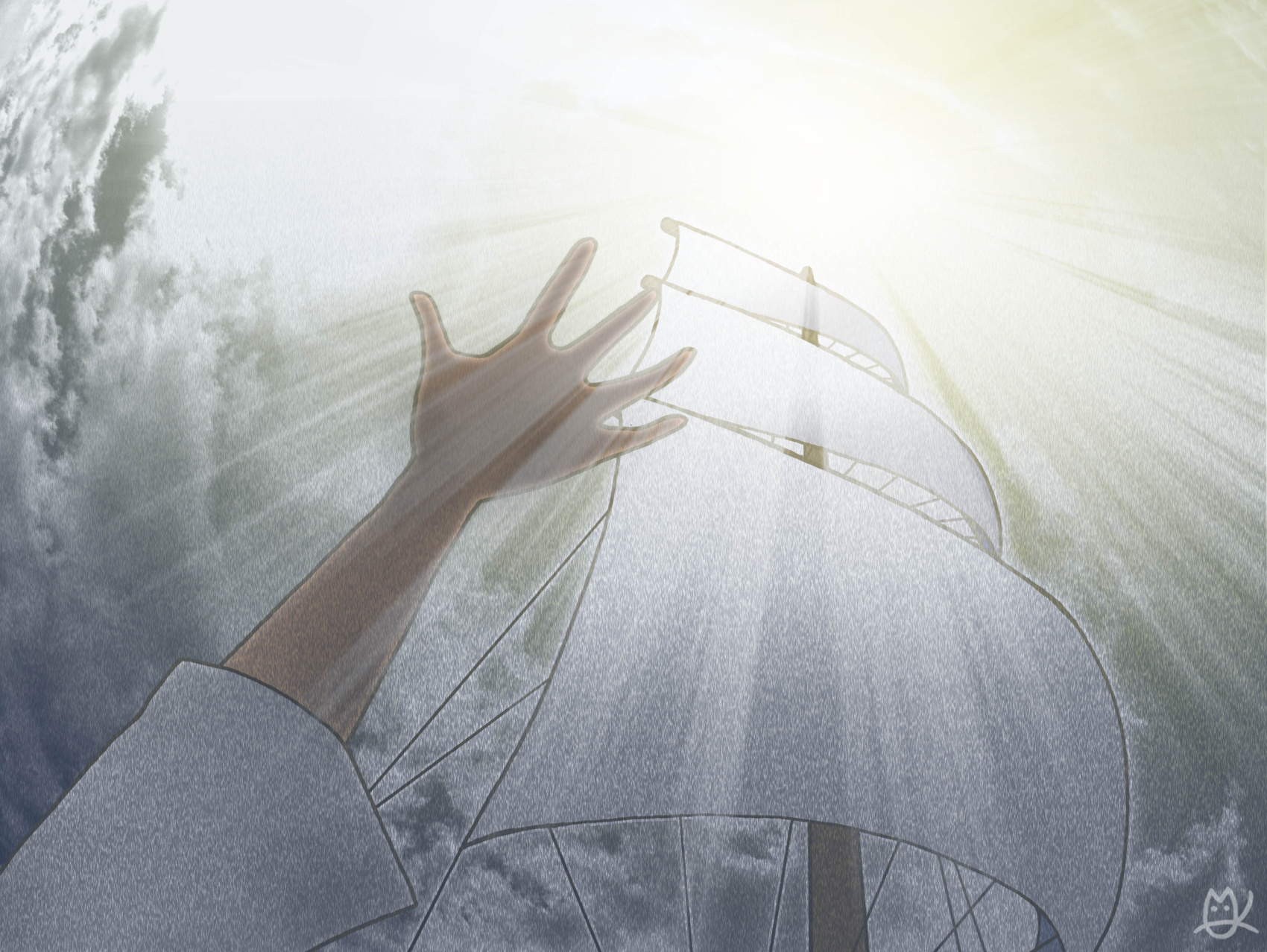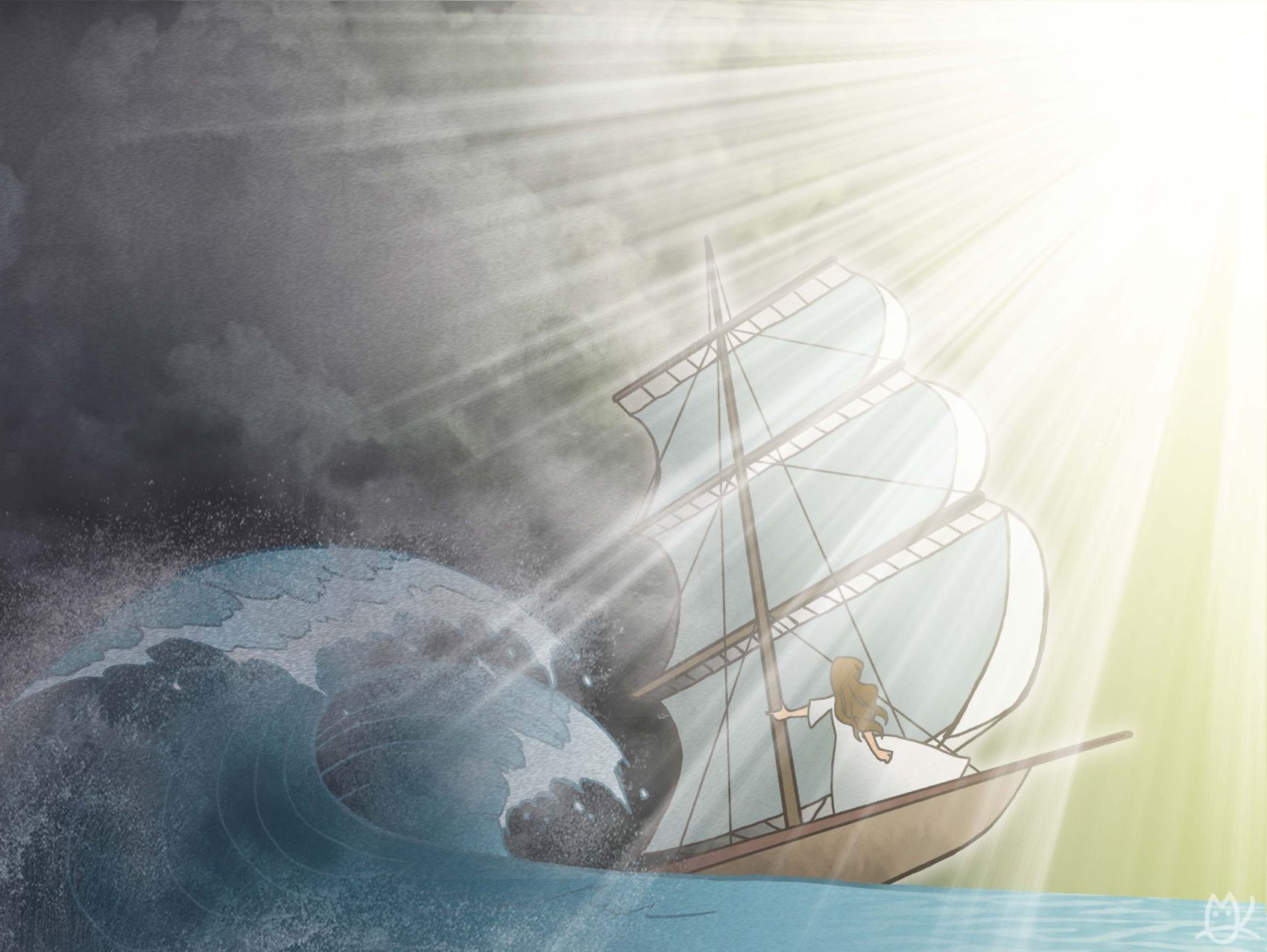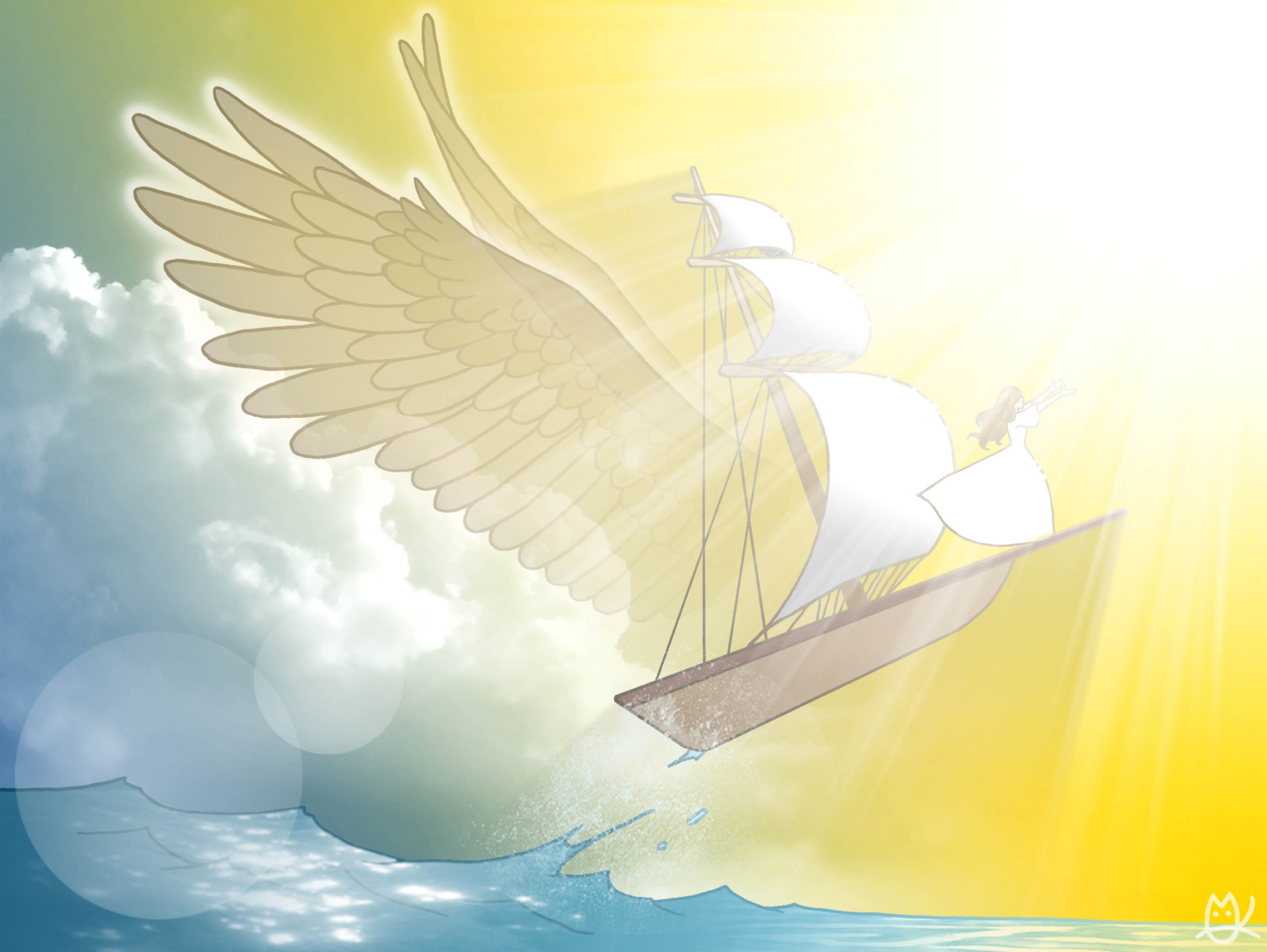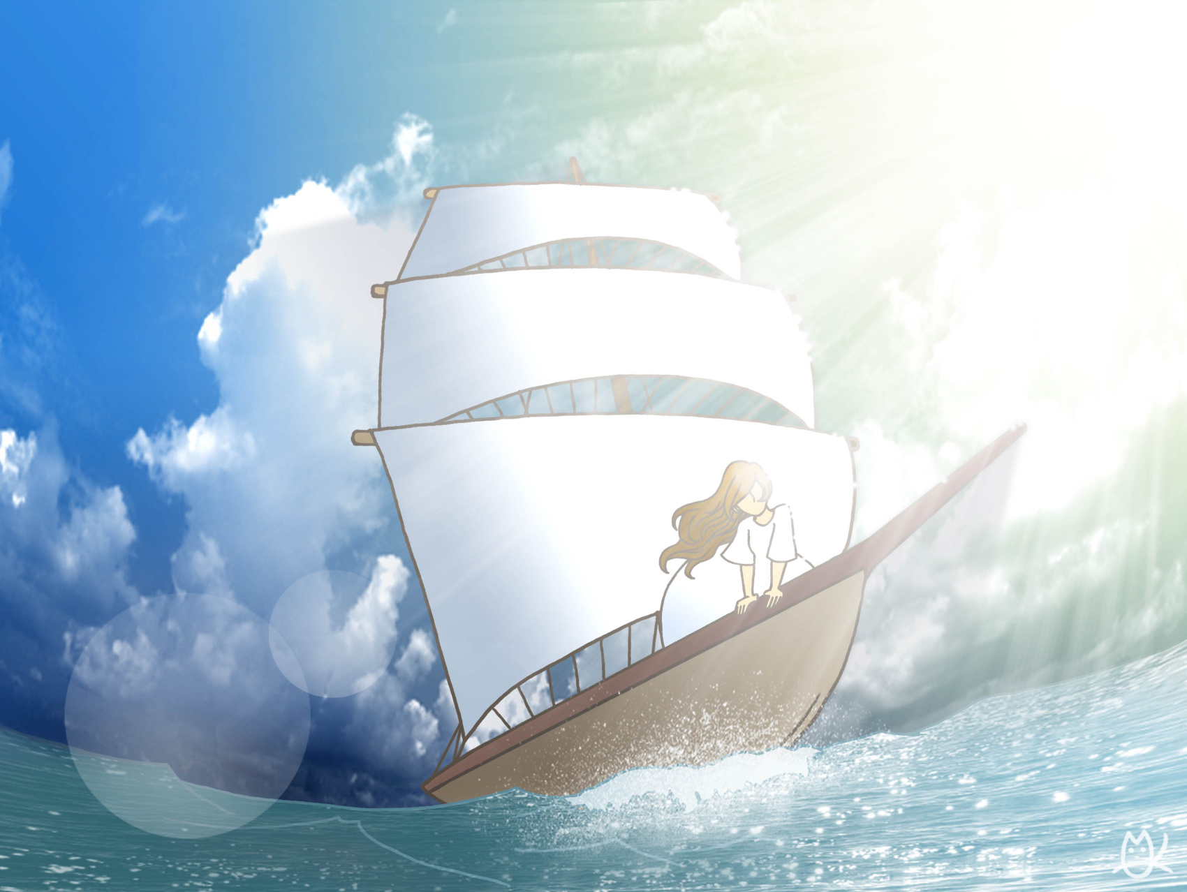 キリスト教福音宣教会の漫画家MiKが描く賛美「主の帆掛け船」のイラストです。歌詞から浮かんだイメージをイラストにしました。